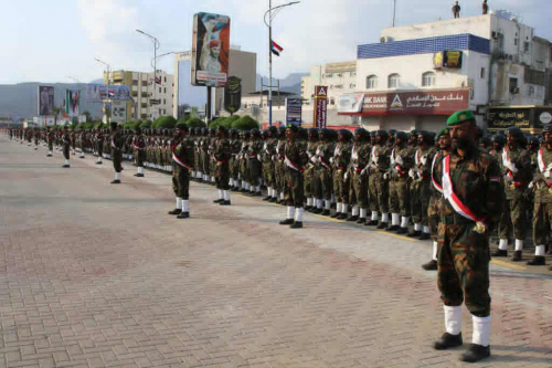 وحضر العرض عدد من قيادات الدولة والمجلس الانتقالي، بينهم الأمين العام للأمانة العامة عبدالرحمن شاهر، ووزير الدفاع الفريق محسن الداعري، واللواء هيثم قاسم، واللواء صالح علي حسن، واللواء علي البيشي، إلى جانب قيادات عسكرية وأمنية ووزراء في الحكومة.