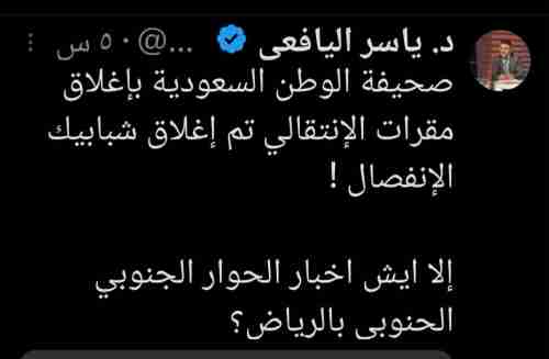 نشرت "صحيفة الوطن السعودية" عنوانًا جاء فيه: "اليمن يغلق أبواب الانتقالي وشبابيك الانفصال"، وهو العنوان الذي أعاد الصحفي اليمني "مختار الرحبي" نشر نصً العنوان على منصة “إكس”، كما وثقه محرر "شبوة برس"