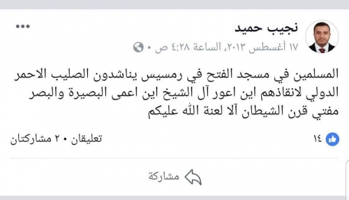 الذي وصف مفتي السعودية بالأعور الدجّال واتهم الملك بقتل المصريين في ميدان رابعة على خلفية إسناد السعودية للرئيس السيسي لإنقاذ مصر .. هذا الإخواني اسمه نجيب حميد من محافظة إب ، هو ذاته وليس تشابه اسماء صار مسؤول برنامج الإعمار السعودي في عدن .
