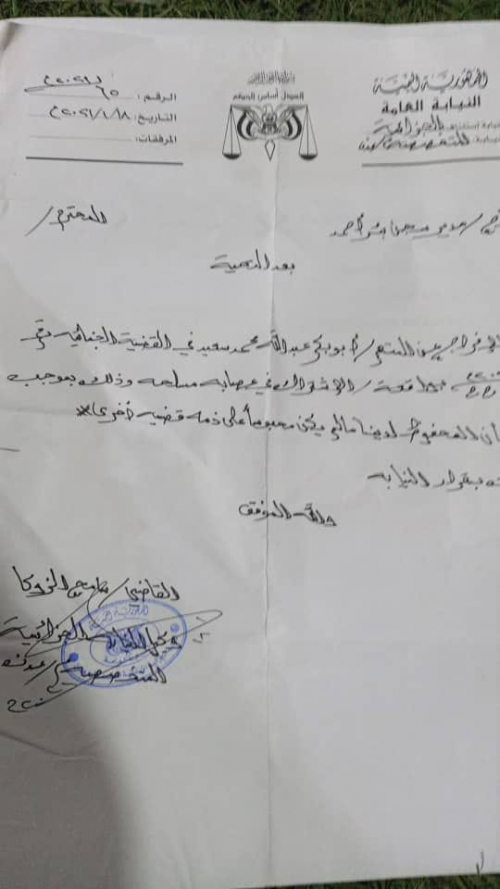 اثارت توجيهات اصدرها وكيل النيابة الجزائية الجديد المدعو « سامح الزوكا» غضب واستياء امني وشعبي في لحج وعدن والمتضمنة الأفراج عن القيادي الارهابي في تنظيم داعش المدعو «أبوبكر البريكي» من المعتقل.