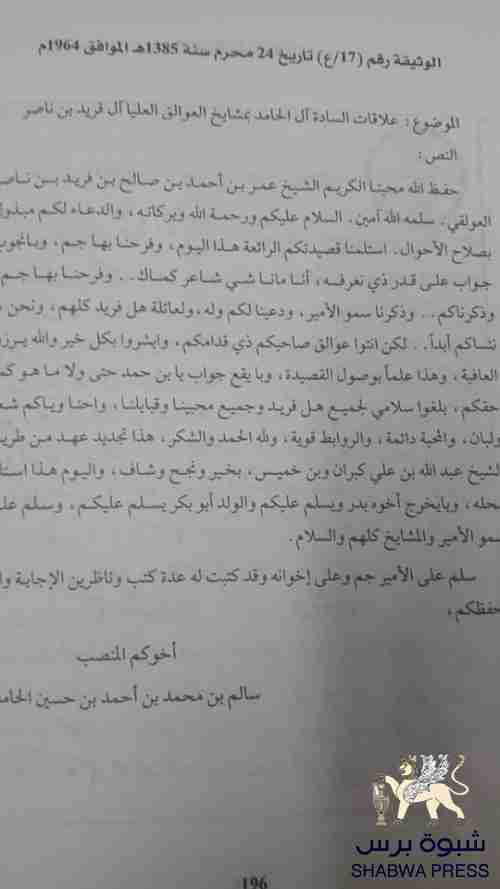 بعد تواصل مع الشيخ محمد فريد بن محسن بن فريد شيخ العوالق العليا وأثناء مكالمة تليفونية سألني: هل تعرفت على السيد أبوبكر الحامد ؟؟