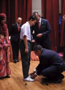في صورة مقززة تعبر عن الذل والمهانة من "أبومحمد الجولاني" وعصاباته لتركيا ظهر "محافظ دمشق التابع الجولاني والمعين من قبله ماهر مروان يلتقط حذاء أحد أعضاء الوف...