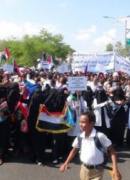 نضم صباح اليوم طلاب وطالبات كليات جامعة عدن وقفة احتجاجية أمام مبنى مفوضية الأ مم المتحدة للمطالبة بتبني خيارات شعب الجنوب وحقة في استعادة دولتة وسلم الطلاب ورقة مكتوبة الى مندوب المفوضية...