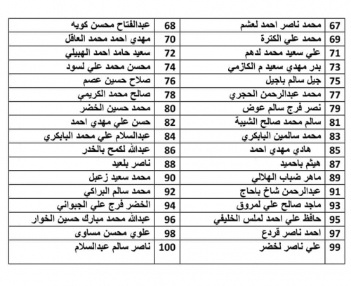 وعليه فإن اللجنة الأمنية في محافظة شبوة توجه هذا التعميم لجميع وحدات الامن والجيش ونقاط التفتيش في جميع المديريات ومداخل المحافظة ومخارجها بإلقاء القبض على اي شخص ممن وردت اسمائهم التالية لكي يقدمو الى التحقيق والقضاء .