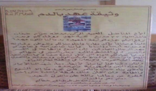 العثور على وثيقة "عهد الدم"في لواء ضبعان ب#الضـالع لقتال ابناء الجنوب (وثيقة)