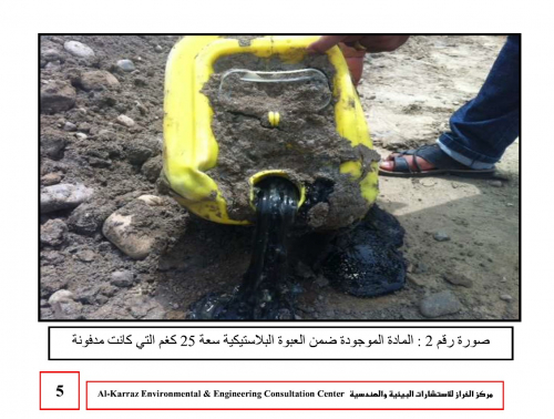 - عملية الدفن تمت بشكل متعمد وبشكل سري ومنذ فترة زمنية تقدر بعشر سنوات قبل الاكتشاف للمدفن، وكان لها انار سلبية على العناصر الطبيعية وعلى السكان. وهناك مواقع أخرى تم الدفن فيها ايضا