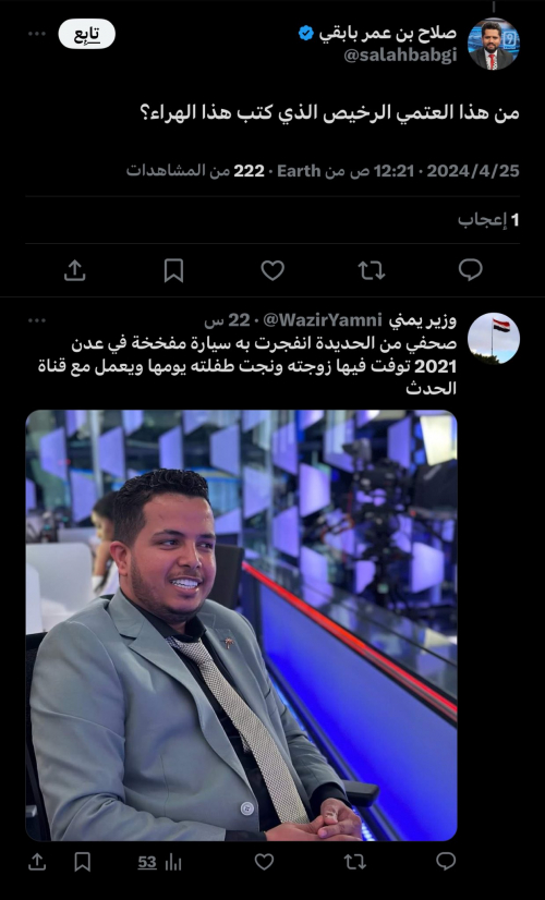 وقال الكاتب "سعيد بكران" في تغريدة رصدها محرر "شبوة برس" مستشهدا ببعض الشواهد يوردا محرر "شبوة برس" "رفق الموضوع".. قال بكران: