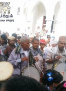 أول ايام العيد السعيد شبام حضرموت بعد صلاه وخطبة العيد ينطلق الموكب في حشود اهالي شبام كبارا وصغارا تتقدمهم الطياله والبيارق من تحت جامع شبام باتجاه الساحه العامه سرحة الحصن حيث تطل حصون الحكم...