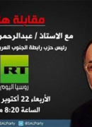 تستضيف قناة روسيا اليوم السيد عبدالرحمن بن علي الجفري السياسي الجنوبي المخضرم المعروف ورئيس حزب رابطة الجنوب العربي " الحر" في مقابلة تلفزيونية تبث مباشرة في تمام الساعة الثامنة وعشرين دق...