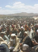 احتشد مئات الالاف من انصار الحوثيين لصلاح الجمعة في شارع المطار تنفيذ لدعوة زعيم الحوثيين السيد عبد الملك الحوثي واعلن عقب الصلاة عن اولى الخطوات التصعيدية للمرحلة الثانية والتي تتمثل في نصب خي...