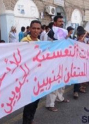 نظم عدد من منتسبي منظمات المجتمع وأقارب معتقلين بينهم نشطاء في الحراك الجنوبي اليوم بمدينة التواهي وقفة احتجاجية هي الثانية خلال أسبوع للمطالبة بالافراج عن المعتقلين بسجون الأمن السياسي دو...