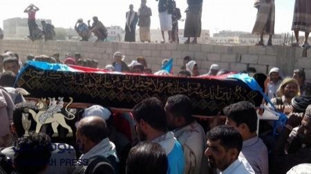 شيع الالاف من أبناء محافظة شبوه في مدينة عتق المحروسة جثمان الشهيد مطلوب محمد مطلوب شطيرات بعد الصلاة عليه في في باحة مسجد عمر بن عبدالعزيز والذي قتل صباح الأثنين الماضي برصاص قوات الأمن المركزي التابعة للإحتلال اليمني أمام مكتب محافظ شبوه أحمد باحاج .