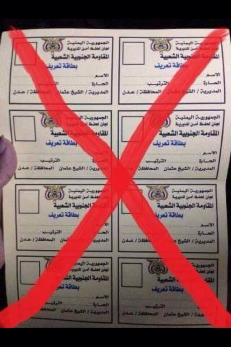 وقد حصلت المقاومة الجنوبية على أسماء المسؤولين عن توزيع هذه البطائق من انصار حزب الاصلاح اليمني وهم :- خالد حيدان وانصاف مايو ونضال باحويرث .