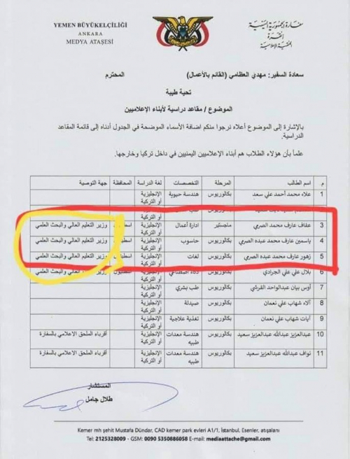 "من الملاحظ ان كل المنح والوظائف في الوزارة والسفارات خصصت لا ابناء الهاربين الإخوان والمؤتمر والوزراء واعضاء مجلس النواب وقيادات عسكرية وأمنية اخوان ومؤتمر