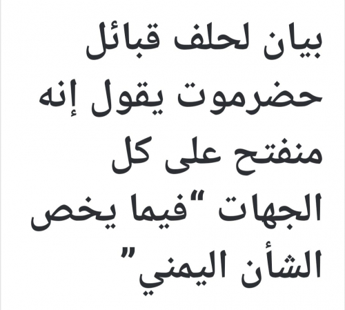 بيان حلف حضرموت والجامع الأخير يعطينا الصورة من خلال تعاطيها قال نحن مع أي تحرك او حلول سياسية يمنية ولكن تنفيذ مخرجات وشروط حلف قبائل حضرموت بمعنى الحقوق هي الظاهر وفي الباطن هي الشق السياسي وهو الأهم بن حبريش يسعى إلى تمثل حضرموت سياسيا".